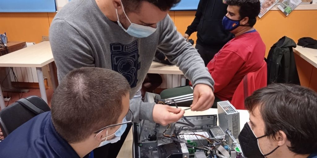 Jóvenes con discapacidad intelectual se forman en el reacondicionamiento de dispositivos electrónicos 12 jóvenes de los programas de formación postobligatoria de Down Madrid FOCUS, Stela...