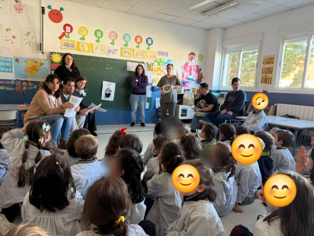 El Colegio Tres Olivos vivió una mañana muy especial gracias a la visita del grupo del Área de Inserción Laboral del Centro Ocupacional de Down Madrid, que llevó al centro una actividad de cuentacuentos pensada para acercar la lectura, la creatividad y la inclusión a los más pequeños. La propuesta, recibida con enorme entusiasmo por parte del alumnado de 4 años, combinó narración, juego simbólico y una actividad plástica que despertó la imaginación de todos los participantes.