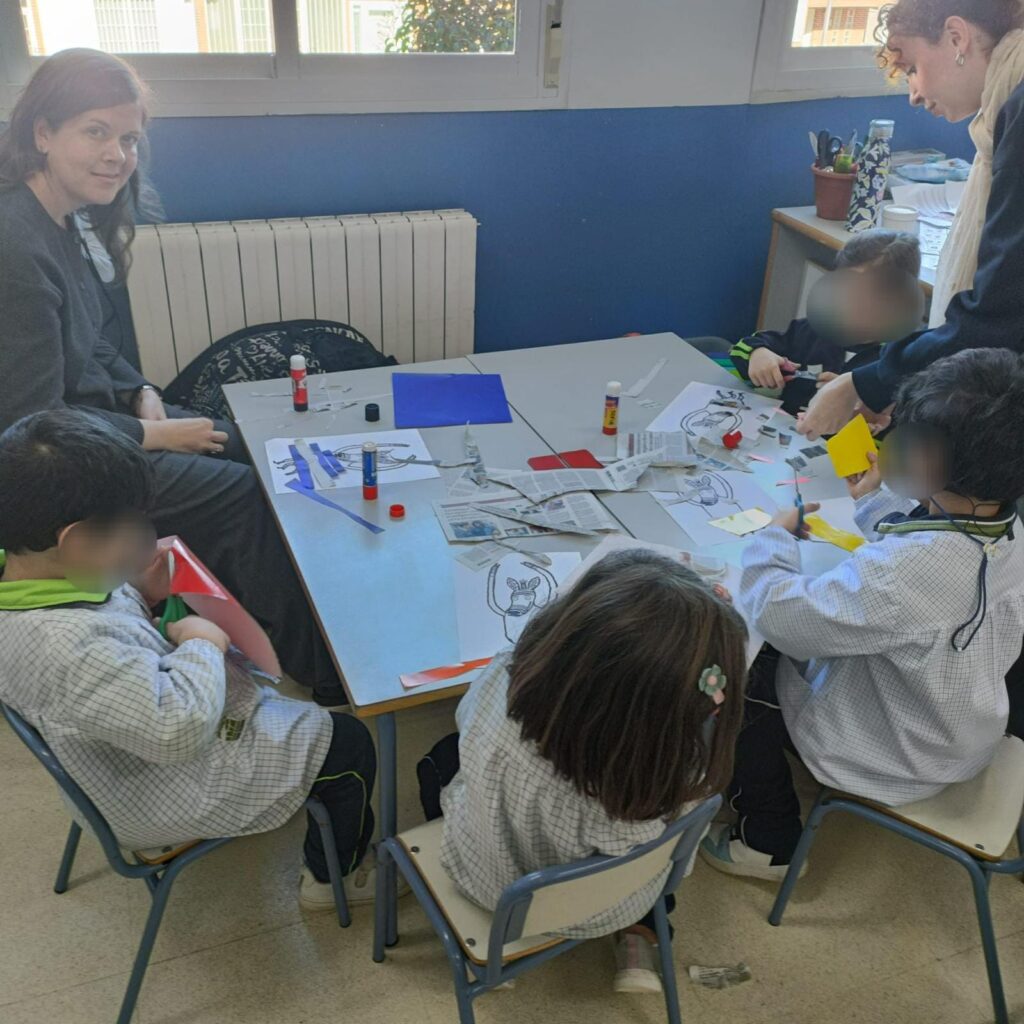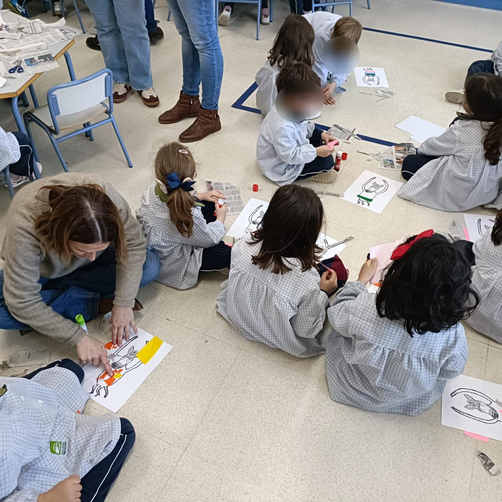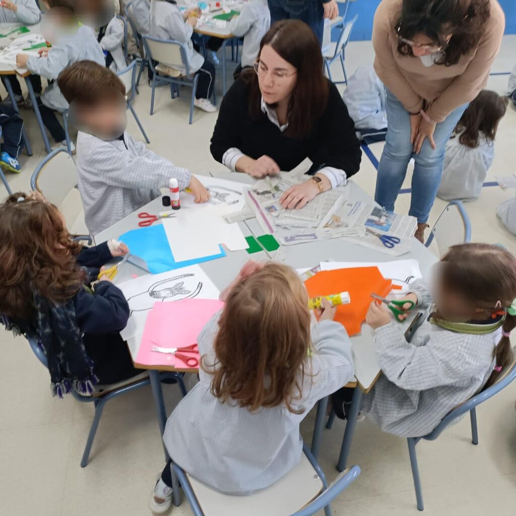 Tras el cuentacuentos, llegó el momento de transformar la historia en una experiencia creativa. Los chicos y chicas del grupo de Inserción Laboral acompañaron a los alumnos de Infantil en una actividad manual en la que cada niño dio forma a su propia cebra, inspirada en el protagonista del relato. Entre pinturas, pegatinas, tijeras y mucha imaginación, los pequeños fueron creando versiones únicas del personaje, mientras recibían la ayuda y el apoyo cercano de los monitores visitantes.