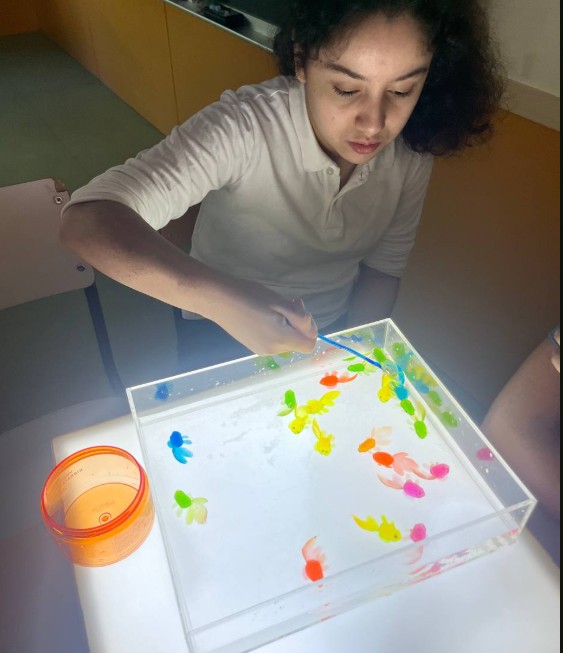 Su uso se adapta a diferentes edades y necesidades, contribuyendo a un aprendizaje más sensorial e inclusivo para todo nuestro alumnado. Os enseñamos estas fotos para que veáis su efecto: