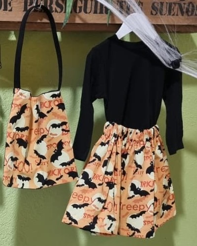 - Modelo Murciélago: camiseta, falda y bolsa para chuches.