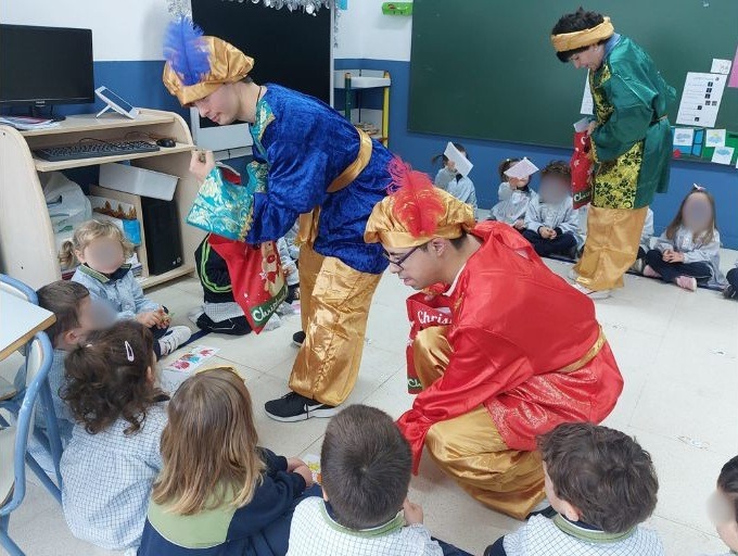 El pasado lunes, los participantes del Centro Ocupacional de Down Madrid vivieron una jornada muy especial en el Colegio Tres Olivos, donde se convirtieron en auténticos Pajes Reales para llevar la magia de la Navidad a los más pequeños. Con una sonrisa y mucha ilusión, recorrieron las aulas de Educación Infantil y Primaria para cumplir una misión muy esperada: recoger las cartas dirigidas a los Reyes Magos.