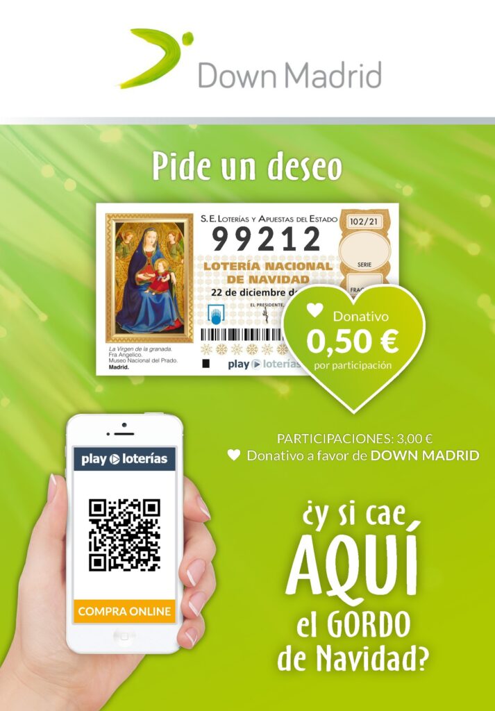 Adquiere tu participación de Lotería Down Madrid para el Sorteo Extraordinario de Navidad en este enlace.