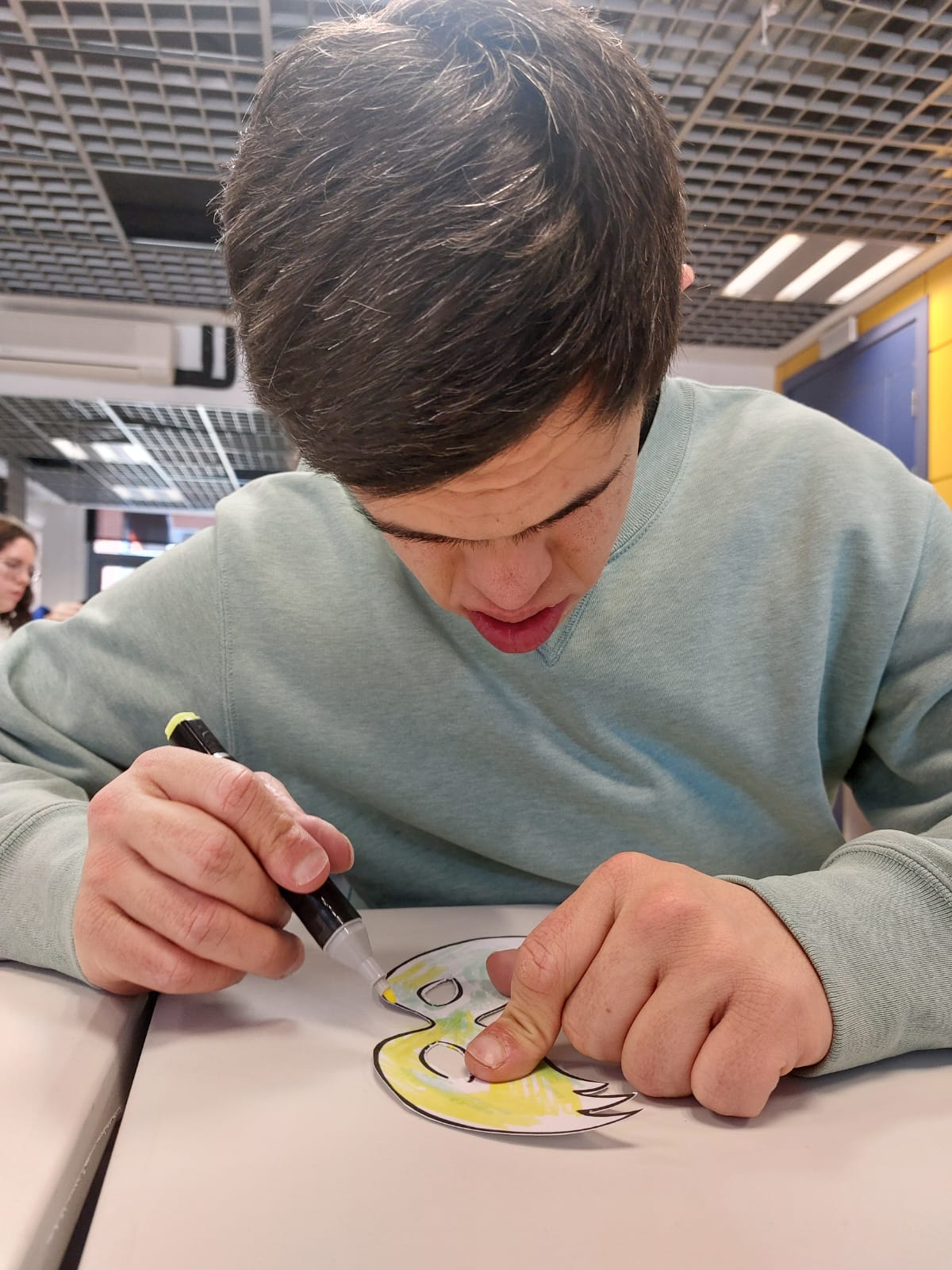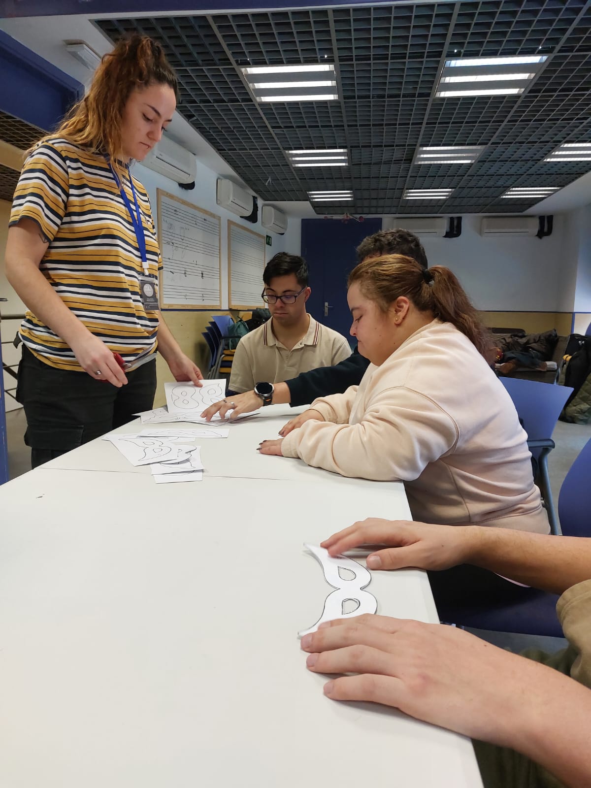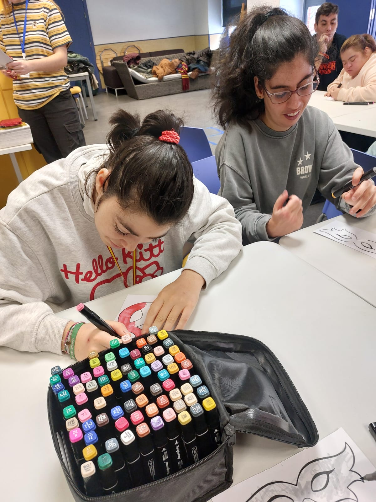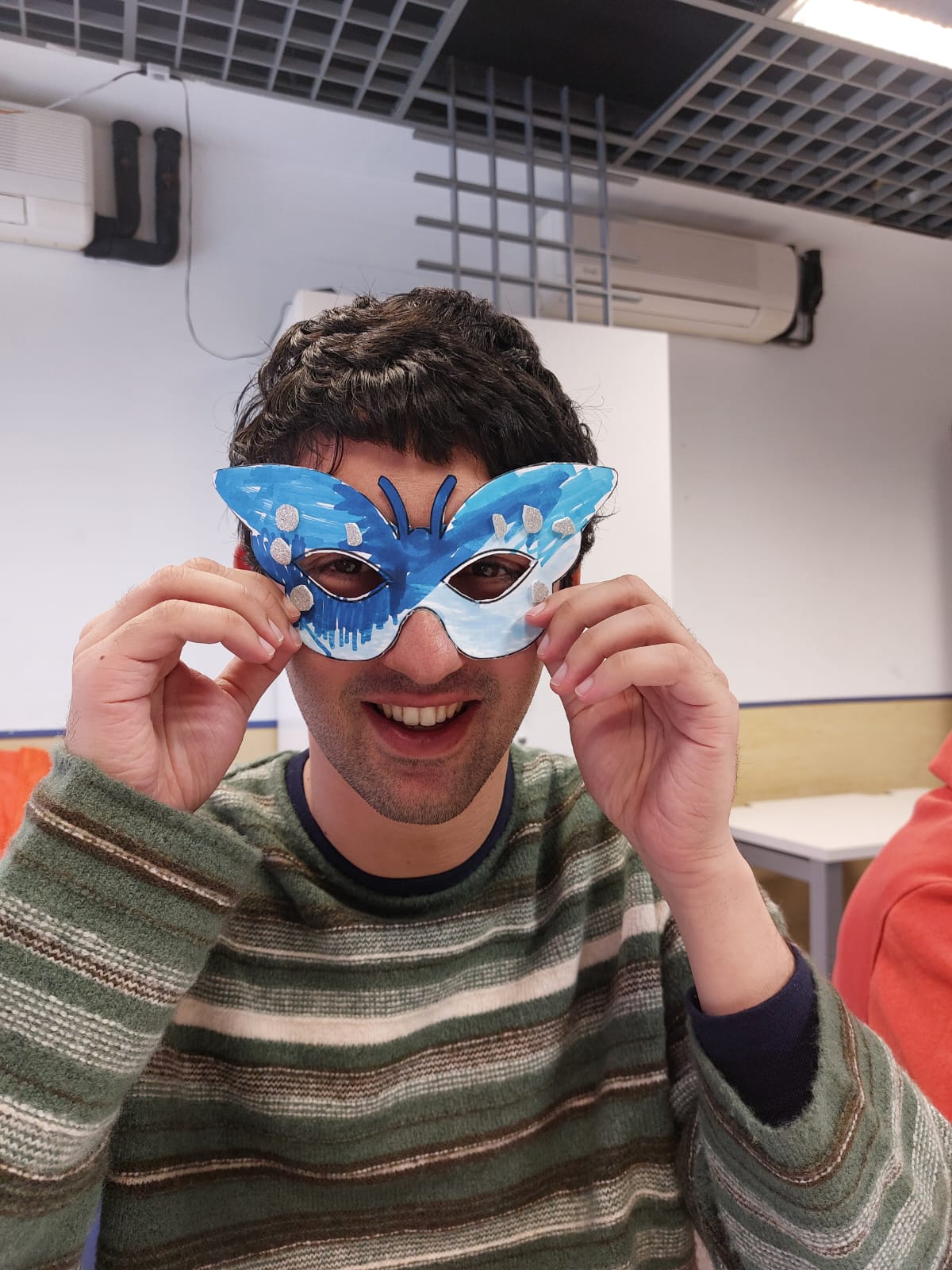 Los participantes de los programas OcúpaT e IníciaT del Centro Ocupacional de Down Madrid han disfrutado esta semana de un dinámico taller de máscaras de carnaval organizado en el Centro Juvenil Hontalbilla, un espacio municipal que mantiene una estrecha colaboración con diversos servicios de Down Madrid. La actividad se enmarca en las iniciativas que ambas entidades desarrollan de manera conjunta para promover la inclusión real de personas con discapacidad intelectual en los recursos comunitarios del distrito de Fuencarral-El Pardo.