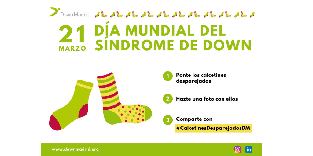 Distintas instituciones se suman a la campaña #CalcetinesDesparejadosDM Down Madrid ha celebrado el Día Mundial del Síndrome de Down por la...
