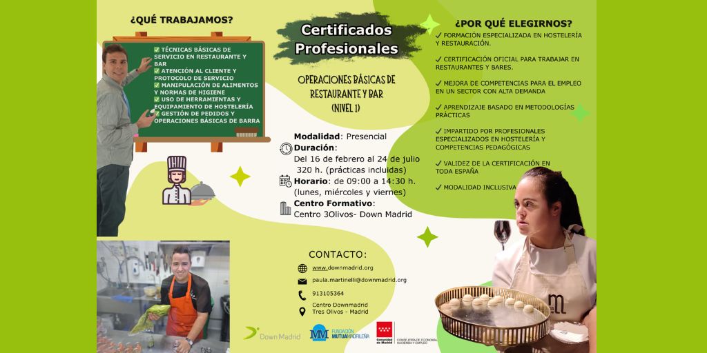 Certificado Profesional de Operaciones Básicas de Restaurante y Bar (nivel 1) En Down Madrid seguimos apostando por la inclusión laboral y...