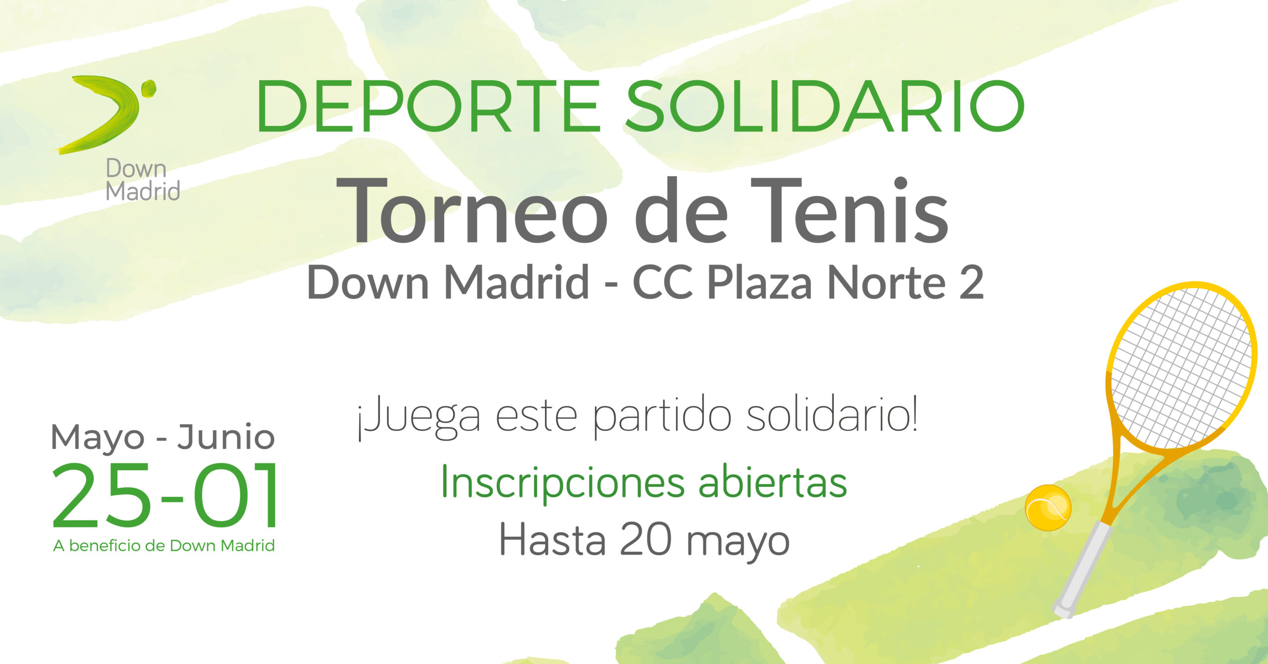 I Torneo de Tenis Down Madrid – CC Plaza Norte 2 en el RACE ¿CUÁNDO? Del 25 de mayo al 1...